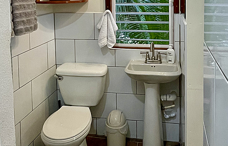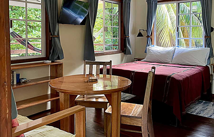 Originally this tiny home was the upper floor to Piquitololo. Some major repairs were needed and we came up with the plan to move it off entirely. We called the Mennonite crew who had built our Pump House Cabin to help make it happen. At the same time, my mother’s original home from the 80’s had to be dismantled as it was beyond repair. We used the Belizean hardwood salvaged from her home for the floors and railings and recreated her breezeway into a spacious front porch. We know she would’ve loved the revamped Treehouse Cabin.