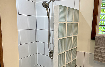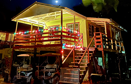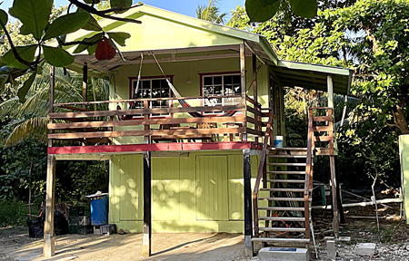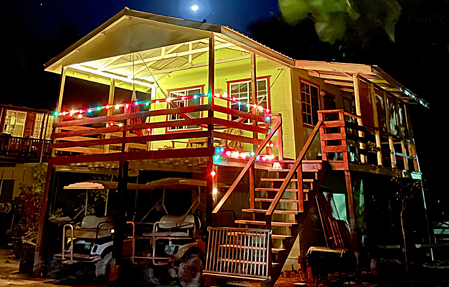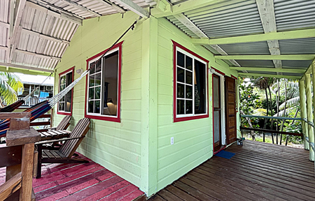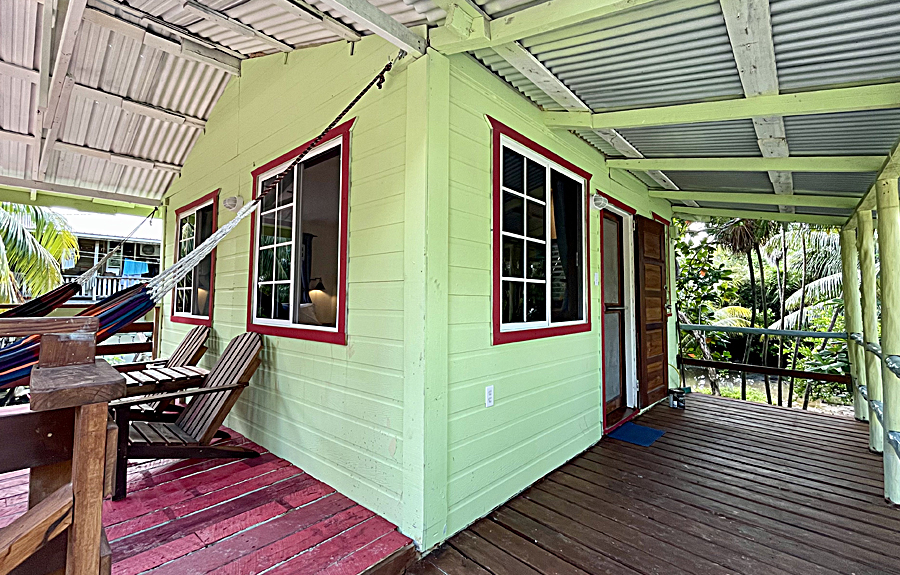 Originally this tiny home was the upper floor to Piquitololo. Some major repairs were needed and we came up with the plan to move it off entirely. We called the Mennonite crew who had built our Pump House Cabin to help make it happen. At the same time, my mother’s original home from the 80’s had to be dismantled as it was beyond repair. We used the Belizean hardwood salvaged from her home for the floors and railings and recreated her breezeway into a spacious front porch. We know she would’ve loved the revamped Treehouse Cabin.